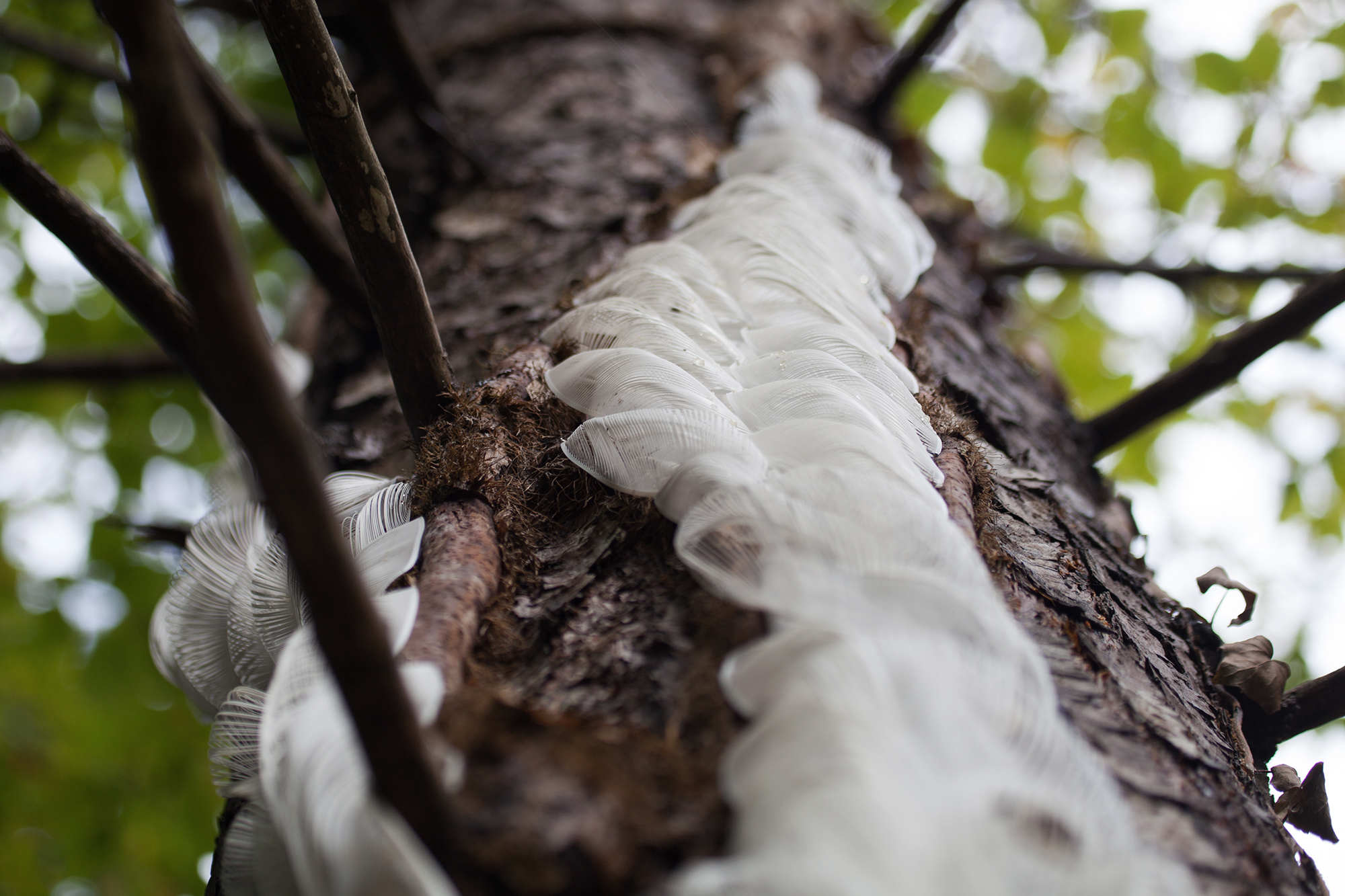 With the help of the installation, sensory signals from the environment (temperature, movement, sound, brightness etc.) are recorded and reflected by a light system integrated into the 3D printed structure. Each one of the 850 3D-printed modules is illuminated by LEDs, which are individually controlled by a central processor unit. Furthermore, a custom code uses these inputs, which are not perceptible to us humans, and visualizes them in form of organically moving patterns of light. In this way, the "synthetic swarm" is transformed into a medium that directly enables a communication between humans and nature. On the one hand, the structure looks like a synthetic, parasitic organism that emerged as a consequence of rapid technological evolution, on the other hand, it offers a completely new way of communication between us and our environment.