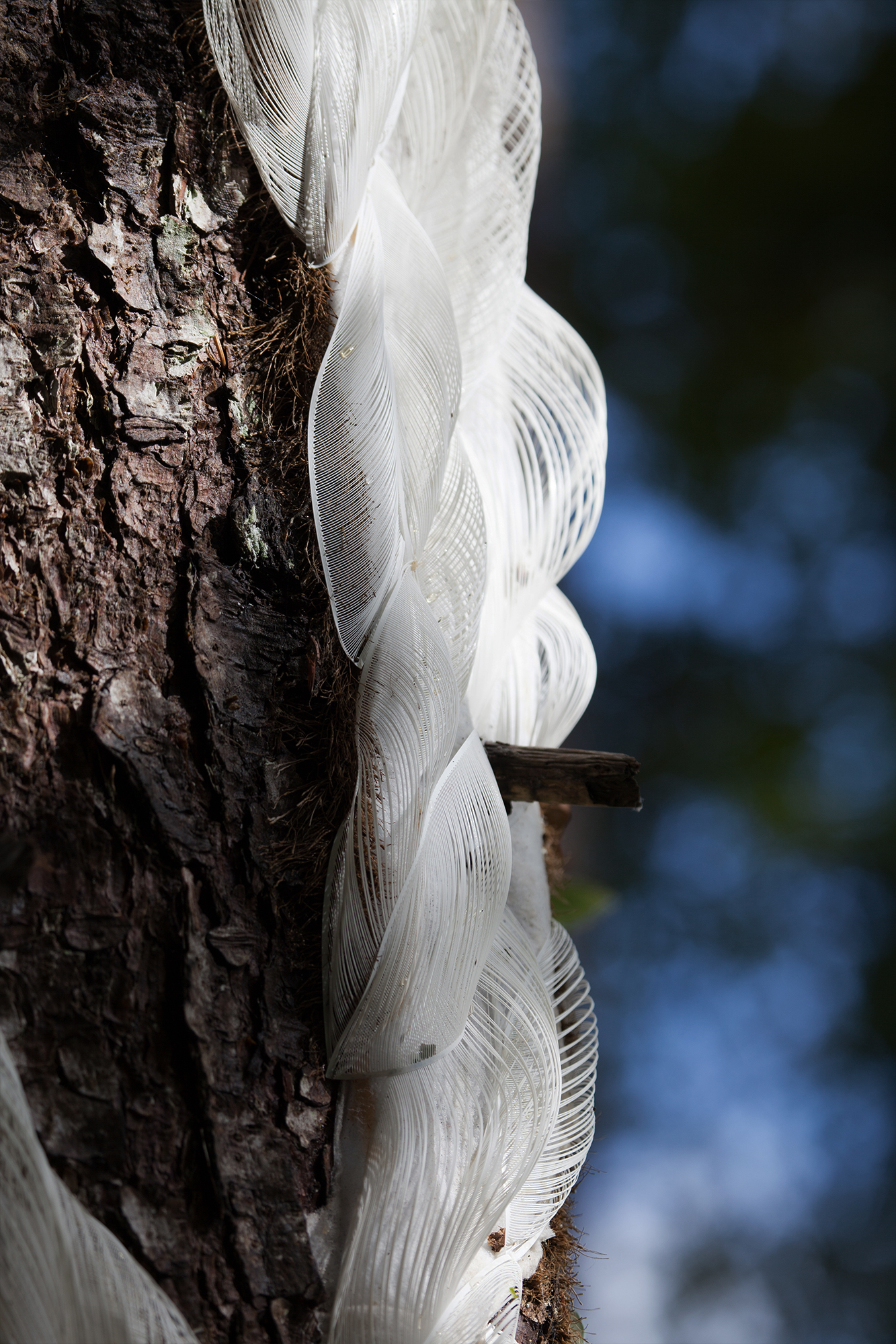 Non-toxic, biodegradable ecoPLA is used for the installation, which, due to its materiality and organic morphology, also intensifies the discourse on the areas of tension between humans, nature and the climate.